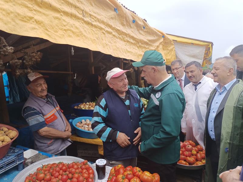Selden etkilen Gökçebey, Çaycuma, Devrek, Merkez ilçe ve beldelerini ziyaret ederek yetkililerden bilgi alan Bakanımız Sayın KİRİŞÇİ, sel ve taşkın yaşanan yerlerdeki çiftçi, esnaf ve vatandaşları ziyaret edip geçmiş olsun dileğinde bulundu. Büyük bir özveriyle selden etkilen tüm vatandaşlara tek tek ulaşmaya çalışan Bakanımız Prof. Dr. Vahit KİRİŞÇİ sel sularının yer yer yükseldiği alanlarda bile vatandaşlarımızın yanında olup talep ve isteklerini dinledi. Üreticilerimiz bu kötü günlerde Devletimizin yanımızda olduğunu görmek bizlere umut oldu diyerek Bakanımız Sayın Prof Dr. Vahit KİRİŞÇİ'ye teşekkürlerini sundular.
